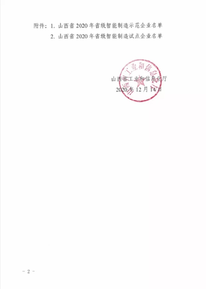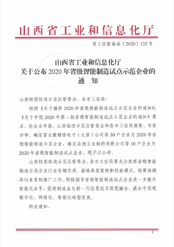 【喜訊】大禹生物榮獲山西省2020年省級智能制造示范企業(yè)榮譽(yù)稱號