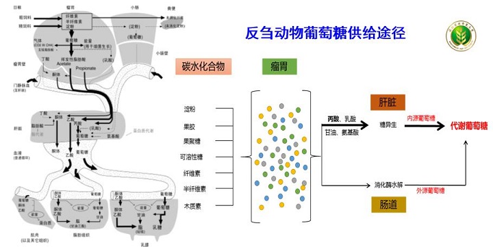 反芻動(dòng)物體內(nèi)葡萄糖的來源途徑,一是飼料中的淀粉經(jīng)消化后轉(zhuǎn)化為葡萄糖由消化道(小腸)吸收;