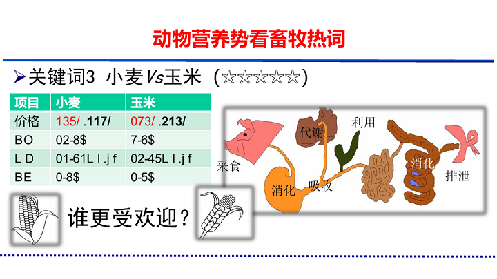 分析了小麥和玉米在不同動物上在采食、消化、吸收、代謝、利用、排泄環(huán)節(jié)的差別,給能量原料利用提供新的思考。