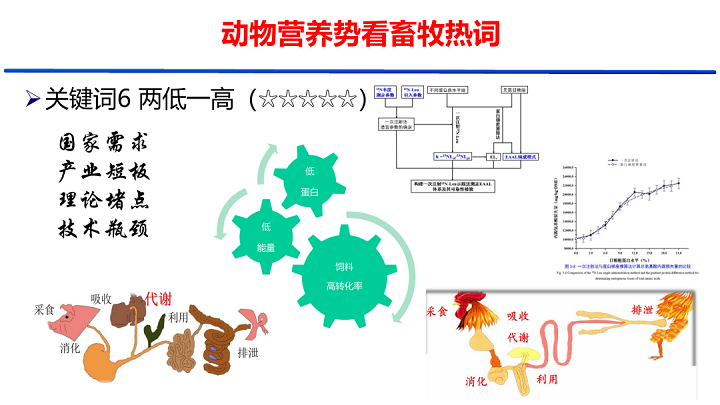 從國家需求、產(chǎn)業(yè)短板、理論堵點、技術瓶頸等角度,分享了對于低蛋白、低能量、高飼料轉(zhuǎn)化效率的理解。