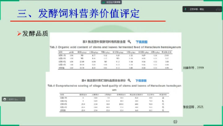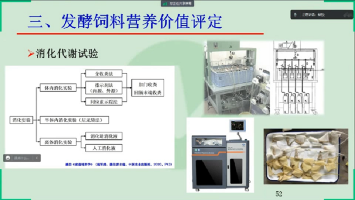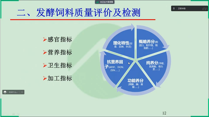 楊教授從發(fā)酵飼料進(jìn)展概述、發(fā)酵飼料質(zhì)量評價與檢測以及發(fā)酵飼料營養(yǎng)價值評定三個方面講解了發(fā)酵飼料質(zhì)量檢測與營養(yǎng)價值評定。